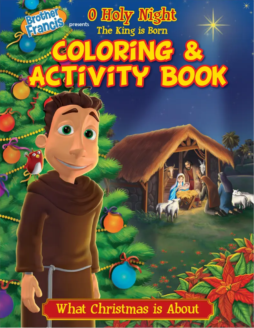 Have fun while coloring and reinforcing the principles taught on the Brother Francis O Holy Night: The King is Born DVD. This coloring & activity book recounts the moving and life changing story of the birth of God’s Son. The Christmas Story, the Birth of God’s Son is the most important event in history. Catholic kids need to learn all about the entire event. Celebrate the wonder and joy of Christmas with Brother Francis in this heartwarming presentation of the Holy Night and birth of God s Son! Thank you! Lord! Witness the moving submission of Mary, The Annunciation, Joseph, and others as they make way for our Savior. Join Brother Francis in the delightfully inspirational and instructive presentation that teaches children all about the Birth of Jesus. , Brother Francis and his friends inspire children in their Catholic faith. The King is Born Coloring & Activity Book will help children establish a personal relationship with God. See also these best selling, Brother Francis Coloring & Activity Books, The Saints, The Mass, Rosary, The Bread of Life, Lets Pray, Born into the Kingdom, The Sacraments, The Jesus Stories, Following in His Footsteps, and More. The Brother Francis DVDs are also a great teaching and compliment to the Brother Francis Coloring & Activity Books.